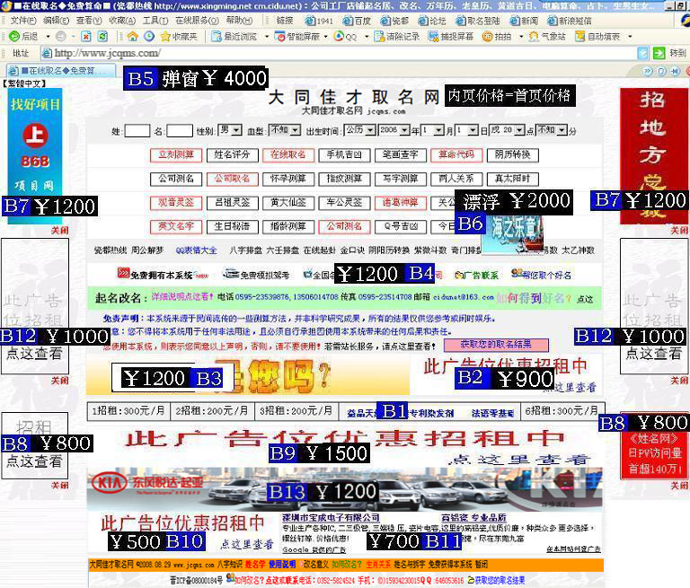 時(shí)間長(zhǎng)可優(yōu)惠(半年9折,整年8.5折,2年8折)。若要其他位置請(qǐng)具體聯(lián)系。要定廣告,匯款方法見(jiàn)這里! |